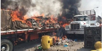 Три грузовика с гумпомощью для Венесуэлы сожжены при пересечении границы