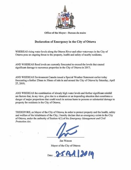В своем выступлении перед членами горсовета, мэр Оттавы Джим Уотсон обратил внимание на масштабный паводок, что грозит сейчас столице, и прошлогодний торнадо, который нанес городу значительные разрушения.
