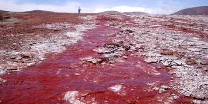 Воды лагуны настолько красные, что кажутся чернилами или кровью.