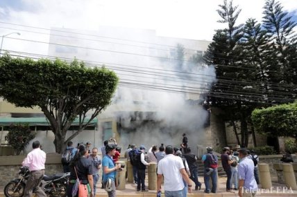 Инцидент произошел в ходе акций протеста учителей и врачей, которая продолжается в столице Гондураса уже второй день. Работники социальной сферы выражают недовольство законами об образовании и здравоохранении.