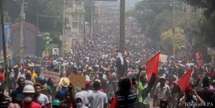 В воскресенье тысячи гаитян вышли требовать отставки президента Жовенеля Моиза в Порт-о-Пренсе и других городах страны, таких как Жакмель, Кап-Аитьен, Сен-Марк и Гонаив. Протестующие жгли шины и бросались камнями, перекрывали дороги.