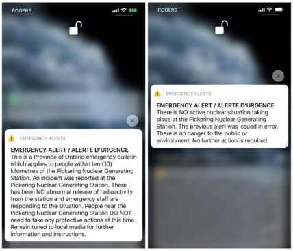 В Канаде жители получили ошибочные сообщения о чрезвычайной ситуации на АЭС.