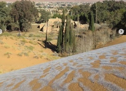 Так, он сфотографировал заснеженную пустыню недалеко от города Айн-Сефра в Алжире, верблюдов после снегопада в районе Табук на северо-западе Саудовской Аравии, а также овец, стоящих на покрытых льдом дюнах, когда температура упала до -3° C.