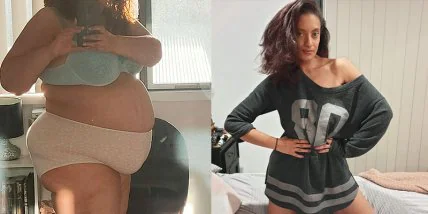 Девушка публикует фото до и после похудения, а также признается, что была "наркоманом нездоровой пищи".