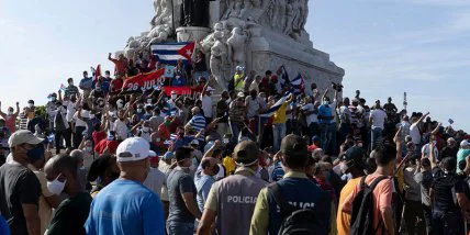 11 июля кубинцы с протестом вышли на улицы от Гаваны до Сантьяго. Основной причиной беспорядков стало недовольство правительством и мерами, которые они принимают для борьбы с коронавирусом. Находясь под санкциями США, Куба терпит нехватку лекарств и продуктов, а уровень смертей от болезни достиг своего максимума. Президент и глава Коммунистической партии Мигель Диас-Канель во всём обвиняет Штаты и призывает сторонников не поддаваться провокациям.