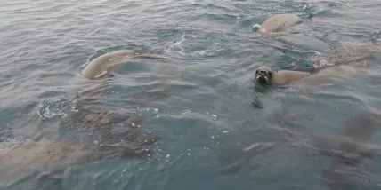 Неподалёку от украинской антарктической станции полярники запечатлели на камеру стаю тюленей.