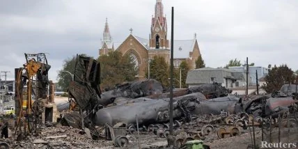 Авария поезда, перевозившего 73 цистерны с нефтью, произошла 6 июля в городе Лак-Мегантик. На месте аварии возник пожар, который перекинулся на близлежащие дома. Погасить огонь удалось только через 2 дня.