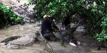 Спасательные службы помогают людям, которые остались в своих домах. Сотни жителей города - без пищи и электричества. Десятки автомобилей отнесло течением.