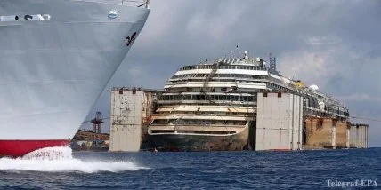 Круизный лайнер Costa Concordia наткнулся на рифы в ночь на 14 января 2012 года в Тирренском море близ острова Джильо у побережья итальянской Тосканы. В результате кораблекрушения погибли 32 человека. Судно получило пробоину левого борта длиной в 70 м. Осенью прошлого года лайнер, который больше года пролежал на боку на мели, установили горизонтально. Правительство Италии ранее заявляло о необходимости утилизировать судно до наступления зимы.
