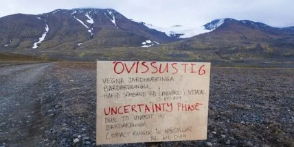 Из-за начала извержения Бардарбунга власти государства объявили "красный" (самый высокий) уровень опасности. По данным РУВ, началось извержение на севере вулканического массива Бардарбунга.