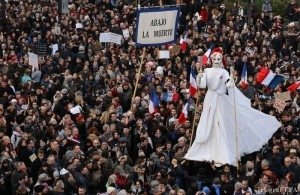 Как сообщает Укринформ, ровно в 16:00 по Киеву манифестанты тремя колоннами отправились с площади Республики до площади Нации. Почти 60 глав государств и правительств, представителей других стран, принимают участие в акции. Так, по центру Парижа в колонне шли премьер-министры Бельгии, Великобритании, Германии, Израиля, Италии, Испании, Польши, руководители Евросоюза, НАТО и Совета Европы, а также Президент Украины Петр Порошенко.