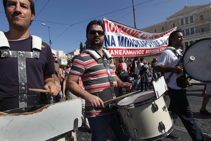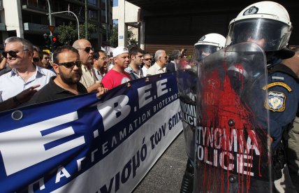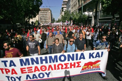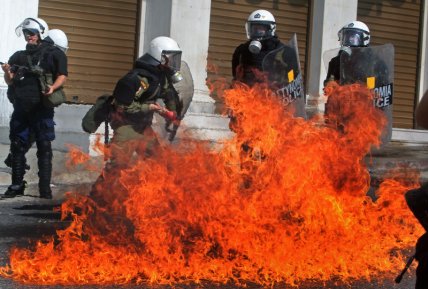 Полицию забрасывали камнями и бутылками с зажигательной смесью. Десятки тысяч человек участвовали в четверг в демонстрациях протеста против политики правительства по сокращению расходов в обмен на кредиты ЕС и МВФ.