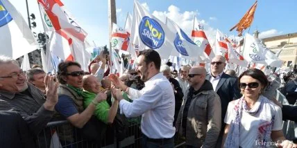 Масштабная акция протеста организована одной из главных оппозиционных партий "Лига Севера" во главе с Маттео Сальвини. К ним присоединяются и те, кто просто недоволен деятельностью правительства господина Ренци.