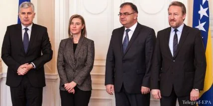 "Совет ЕС приветствует… письменное обязательство президиума БиГ от 29 января, его подписание лидерами политических партий и утверждение парламентом БиГ 23 февраля 2015 года во время визита Верховного представителя ЕС Федерики Могерини в Сараево", - отмечается в постановлении Совета ЕС по иностранным делам.