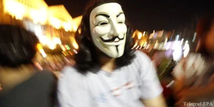 Манифестанты были одеты в маски Гая Фокса - английского дворянина-католика, который в 1605 году пытался взорвать здание парламента. Минувшей ночью в Великобритании отмечали годовщину разоблачения Порохового заговора - такое название получила попытка переворота, организованная в 1605 году группой католиков против короля-протестанта Якова I. Эта дата была позже объявлена праздником под названием Ночь костров или Ночь Гая Фокса, во время которого народ жжет костры и запускает фейерверки.