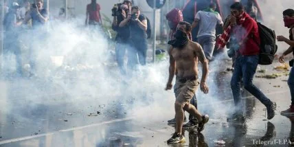 Полиция в ответ применяет водометы. Также к месту столкновений правоохранители направили подкрепления, в том числе спецназ.