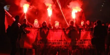В акции приняли участие около сотни человек, которые держали в руках транспаранты вроде "Остановим нашествие мигрантов", "Литва для литовцев".
