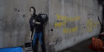 Художник Бэнкси нарисовал Стива Джобса в образе мигранта из Сирии.