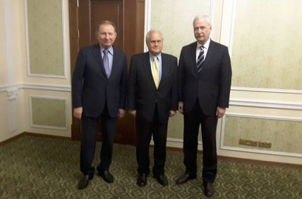 Д.Олифер разместила также фото участников заседания – Л.Кучмы, представителей ОБСЕ и России в Трехсторонней группе - Мартина Сайдика и Бориса Грызлова.