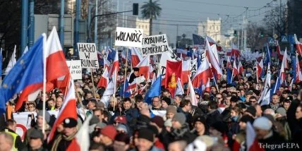 Тысячи жителей Варшавы вышли на акцию в поддержку Леха Валенсы.