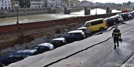 Авария на южном берегу реки Арно произошла около 6.30 утра. В яму размером 200 метров в длину и 7 метров в ширину попали около 20 автомобилей, которые были припаркованы на набережной.