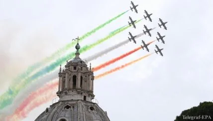 По случаю годовщины сегодня в Италии проходят торжественные мероприятия - парад с участием кортежа президента Италии Серджо Маттареллы, авиашоу, а также праздничные массовые мероприятия.