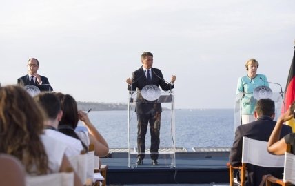 "На фоне исламистского террора, на фоне гражданской войны в Сирии мы чувствуем, что должны сделать больше для нашей внутренней и внешней безопасности", - заявила глава правительства ФРГ во время встречи с премьер-министром Италии Маттео Ренци и президентом Франции Франсуа Олландом, которая прошла на борту авианосца "Джузеппе Гарибальди" у итальянского острова Вентотене, передает Deutsche Welle.