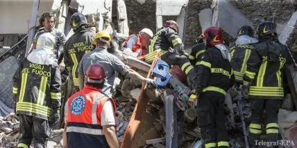 "Мощное землетрясение разрушило череду горных городов в центральной части Италии в среду, оставив жителей в ловушках под грудами щебня, и погубив по меньшей мере 38 человек", - говорится в сообщении. Тысячи итальянцев остались без крыши над головой.