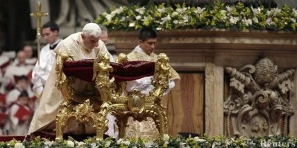 Бенедикт XVI проводит в Соборе Святого Петра в Ватикане торжественную мессу по случаю Рождества Христова.