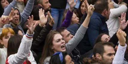 Как отмечает агентство, многие активисты держали в руках плакаты с надписями: "Мы люди, а не товар", а также "Эти документы - не соглашения, а государственный переворот".