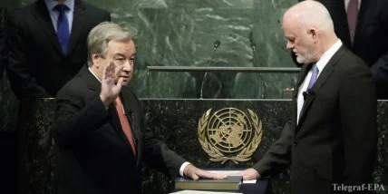 Экс-премьер Португалии Антониу Гутерриш принес присягу в качестве Генерального секретаря ООН, чтобы официально заменить с 1 января на этом посту действующего главу Организации Пан Ги Муна, который руководил ООН в течение десяти лет. Торжественная церемония состоялась во время специального заседания Генеральной Ассамблеи ООН.
