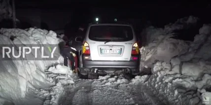 Возле накрытого лавиной итальянского отеля проводят спасательные работы (Видео)