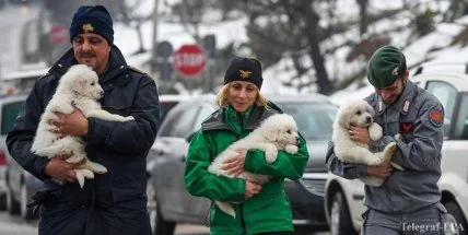 Итальянские спасатели обнаружили трех щенков под завалами гостиницы, накрытой лавиной.