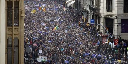 В Барселоне сотни тысяч протестующих вышли на улицы с призывом о въезде беженцев