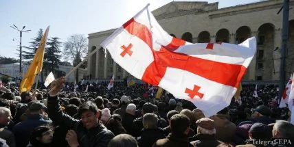 В Тбилиси тысячи вышли на акцию против закрытия телеканала "Рустави - 2".