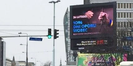 На ситилайте каждые 5 минут по 15 секунд высвечивается информация на польском языке: “26 февраля. 1096 дней сопротивления против российской оккупации Крыма”.