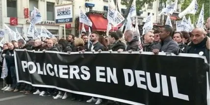 В Париже несколько тысяч людей вышли на протест с черный транспарант с надписью "Полицейские в трауре".
