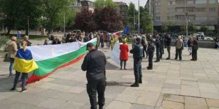 Участники манифестации под болгарскими, украинскими и грузинскими флагами выступили против агрессивной политики Кремля в Европе и демонстрировали плакаты с надписями «Здесь не Москва», «Червены боклуци» (на болгарском "красный мусор"), "Stop Putin. Stop war", "Свобода или СССР".