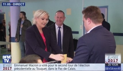Марин Ле Пен также голосовала в департаменте Па-де-Кале, но в городке Энен-Бомон. Позже она также отправится в Париж, где будет ждать объявления результатов голосования.