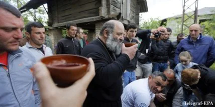 Фестиваль в Грузии по традиции начался с торжественного открытия квеври - большого глиняного кувшина с вином.