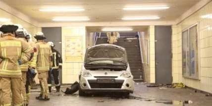 В Берлине водитель потерял контроль над автомобилем и скатился в подземку.
