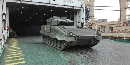 В в воскресенье в порт прибыли танки Leopard, боевые машины пехоты Pizarro, а также транспорт технической поддержки и логистики.