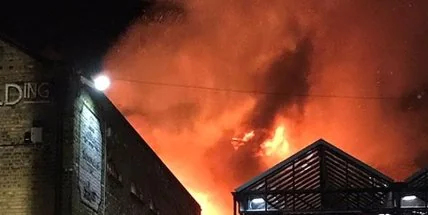 В Лондоне горит рынок, на борьбу с огнем брошены десятки пожарных.