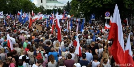 В Варшаве под зданием парламента проходит многотысячная антиправительственная манифестация против действий правящей партии “Право и Справедливость” (PiS), направленных на быстрые изменения законов о функционировании судебной системы страны.