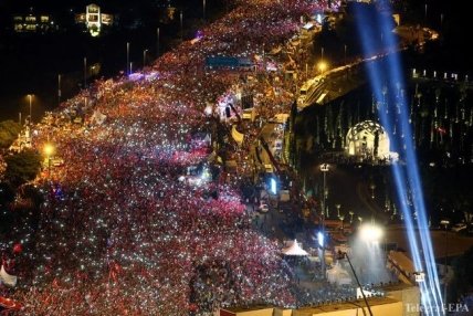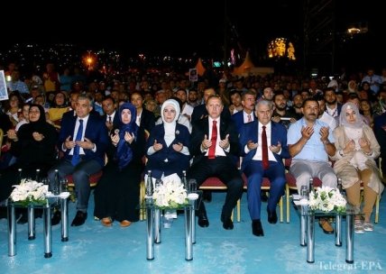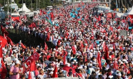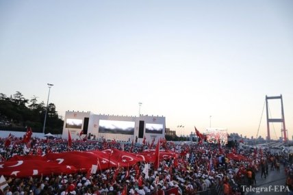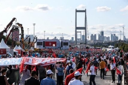 Отмечается, что десятки тысяч жителей Стамбула собрались в трех различных районах мегаполиса, откуда направились шествием к одному из трех мостов через Босфор, где год назад 34 мирных граждан ценой своей жизни предотвратили продвижение путчистов.