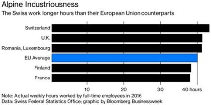 Смена парадигмы: Ротшильды поверили в биткоиныВ среднем сотрудник в Швейцарии, занятый полный рабочий день, проводит еженедельно на работе 42 часа 48 минут. Остальные же жители Европы в основном работают не более 40 часов в неделю. Больше работают, кроме Швейцарии, также сотрудники в Великобритании, Румынии и Люксембурге.