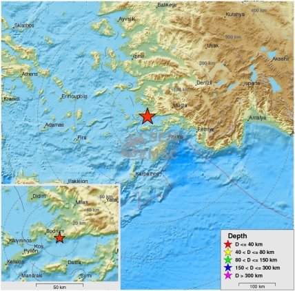 В Турции затонуло судно с туристами: три человека погиблиПредыдущие подземные толчки в Эгейском море магнитудой 6,6 произошли в ночь на 21 июля. Эпицентр землетрясения находился в 10,3 км от Бодрума и в 16,2 км от греческого острова Кос, также популярного среди туристов. На острове Кос погибли два человека, 120 пострадали.