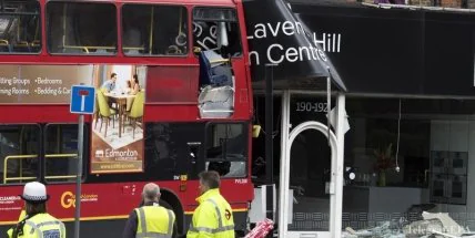 В Лондоне двухэтажный автобус, в салоне которого находилось порядка десятка пассажиров, врезался в магазин в юго-западной части города.