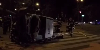 Полицейский автомобиль, который сопровождал кортеж, врезался в фургон, в результате чего полицейское авто вынесло на тротуар, на котором оно сбило пешехода.