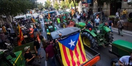 Крестьяне со всей Каталонии собрались на пикет в поддержку референдума о независимости, передает ABC Espana. Сообщается, что в пятницу со всех районов Каталонии крестьяне собрались на тракторах, чтобы осуществить забастовку в поддержку референдума о независимости Каталонии.